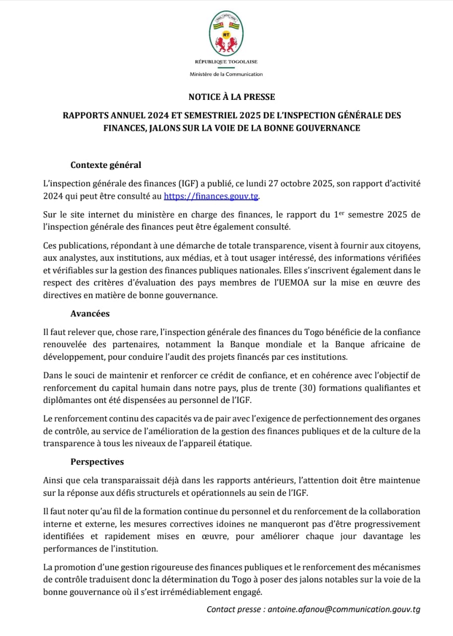 Ces publications régulières permettent à toutes les parties prenantes – citoyens, institutions, médias et partenaires internationaux – d’accéder à des données fiables et vérifiables sur la gestion des finances publiques.