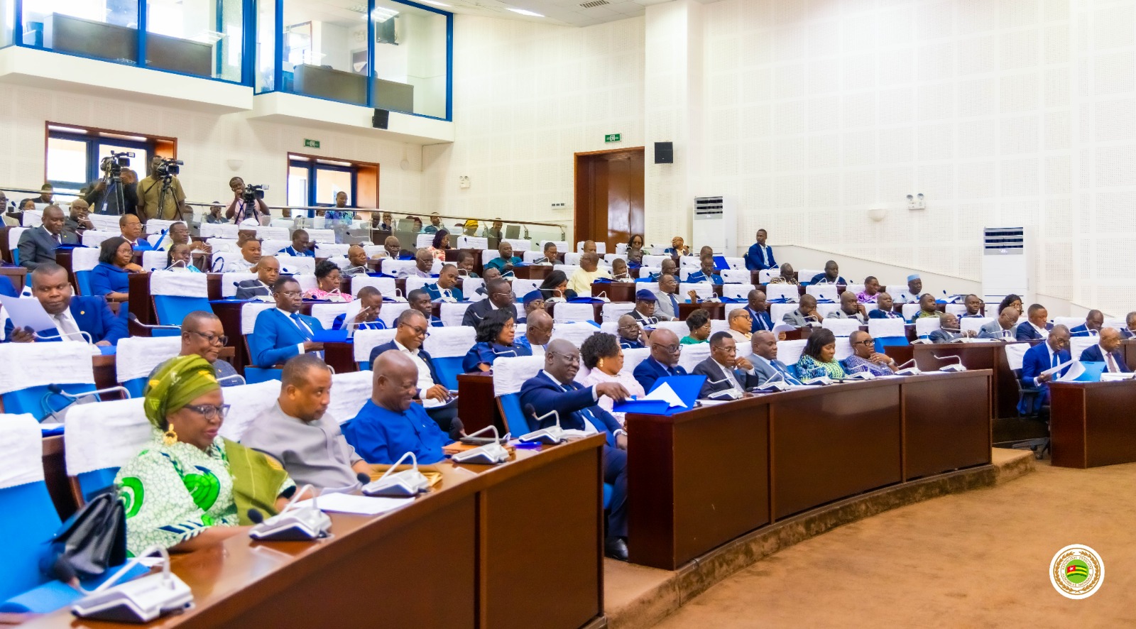 Je voudrais vraiment le remercier. Et également adresser ma reconnaissance au président de la commission des finances et à tous les membres de la commission des finances pour avoir sacrifié leur temps en quelques jours pour parvenir au rapport qui nous a été présenté et qui a favorisé l’adoption de ce projet de loi de finances rectificatives. Le projet de loi de finances rectificative, exercice 2025, approuvé par la représentation nationale à la majorité absolue, ce lundi 22 décembre, est projeté à 2.436 milliards de francs CFA en charges et en ressources contre 2.396,6 milliards de francs CFA dans la loi de finances initiale, soit une augmentation de 39,4 milliards de francs CFA”””.